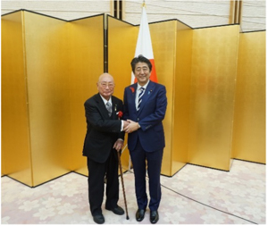 令和元年10月11日「安全安心まちづくり関係功労者内閣総理大臣表彰」を総理官邸において受賞しました。写真は、受賞後に安倍総理大臣と記念撮影に応じる斎藤会長。